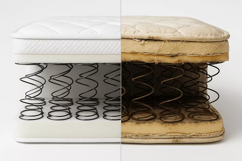 Khi Nào Thay Nệm Lò Xo? Thay ngay lập tức khi có: Độ lún vượt 2.5cm không phục hồi sau 2 phút Tiếng kêu kim loại khi di chuyển trên nệm Đau lưng kéo dài hơn 30 phút mỗi sáng...