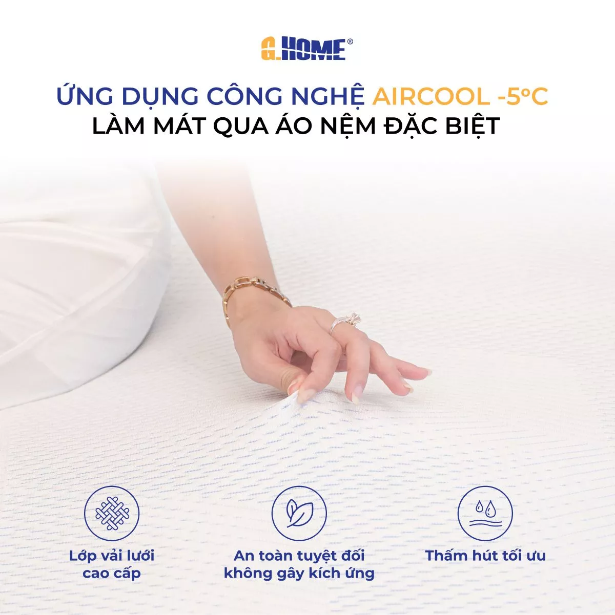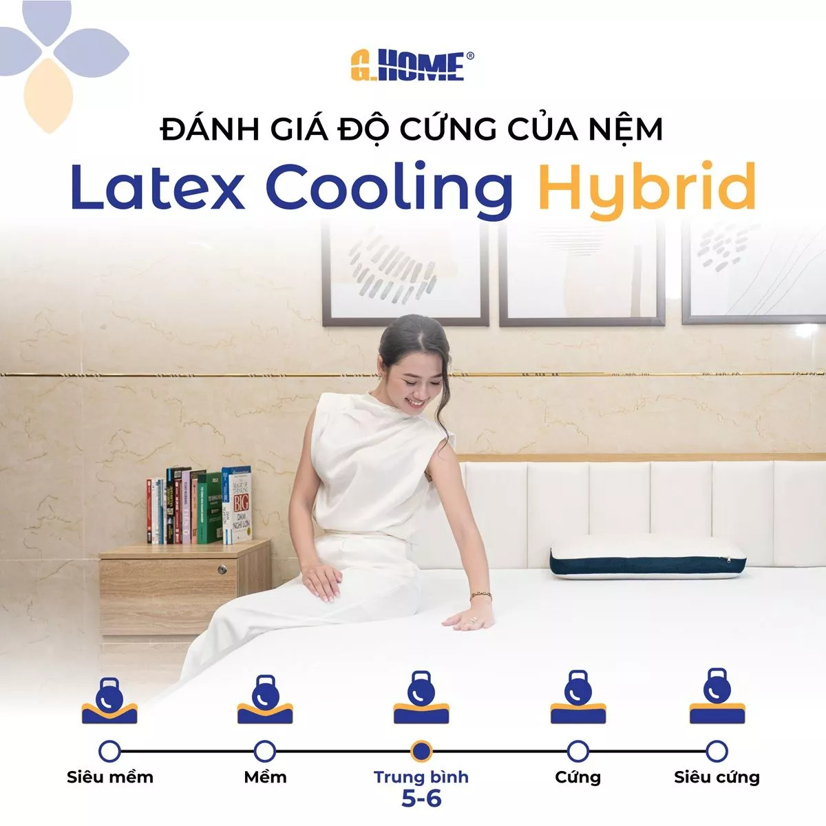 • Nệm cao su đa tầng Latex Cooling Hybrid từ G.Home không chỉ là sản phẩm nệm thông thường mà còn là giải pháp toàn diện, mang đến giấc ngủ sâu, trọn vẹn đồng thời bảo vệ sức khỏe cột sống tối ưu mỗi ngày.