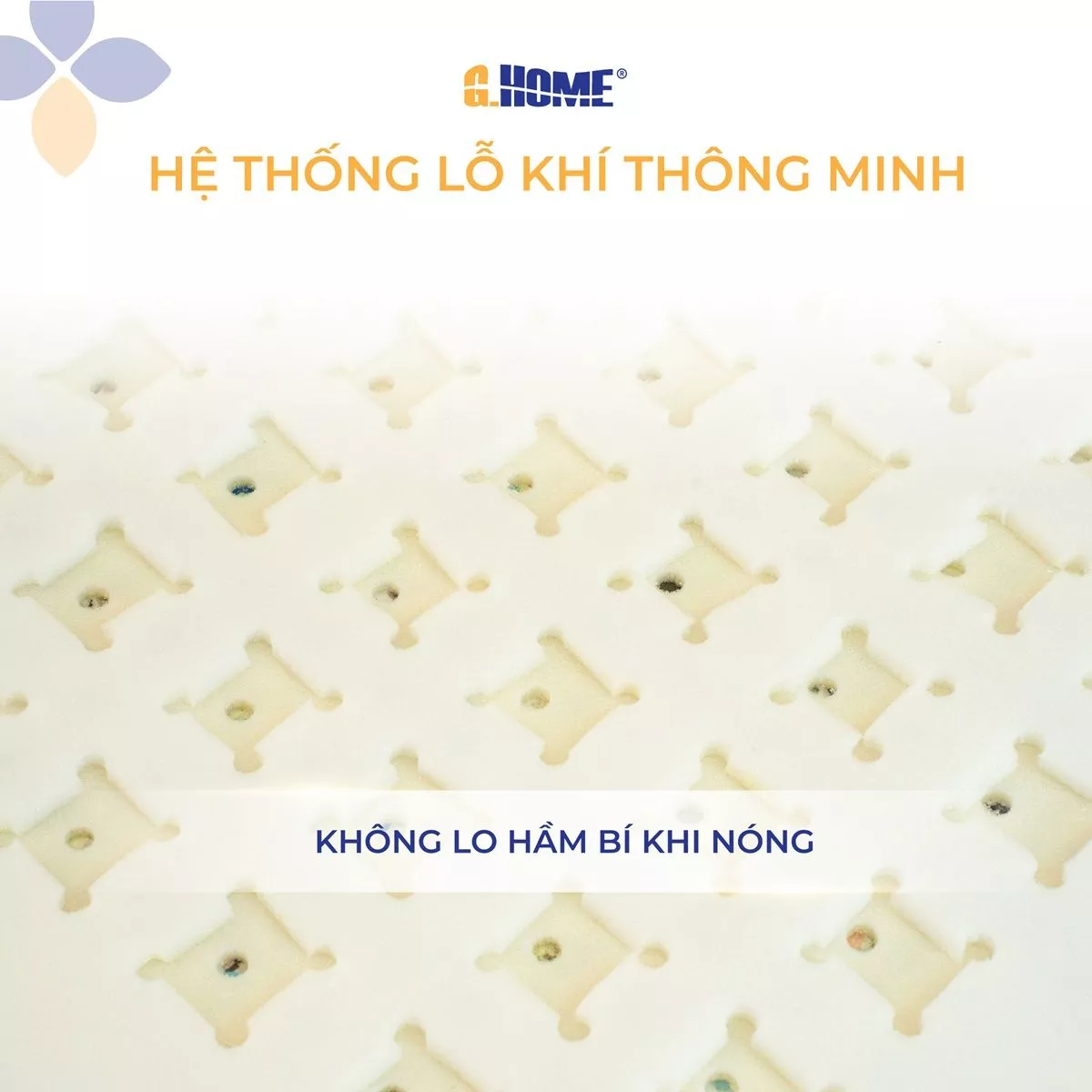 Nệm Foam Cao Su Nhân Tạo Premier Comfort từ G.Home tích hợp công nghệ foam ép cách nhiệt tiên tiến. Thiết kế độc đáo với một mặt lỗ vuông và một mặt lỗ tròn mang đến khả năng lưu thông không khí vượt trội và phân tán áp lực đồng đều.
