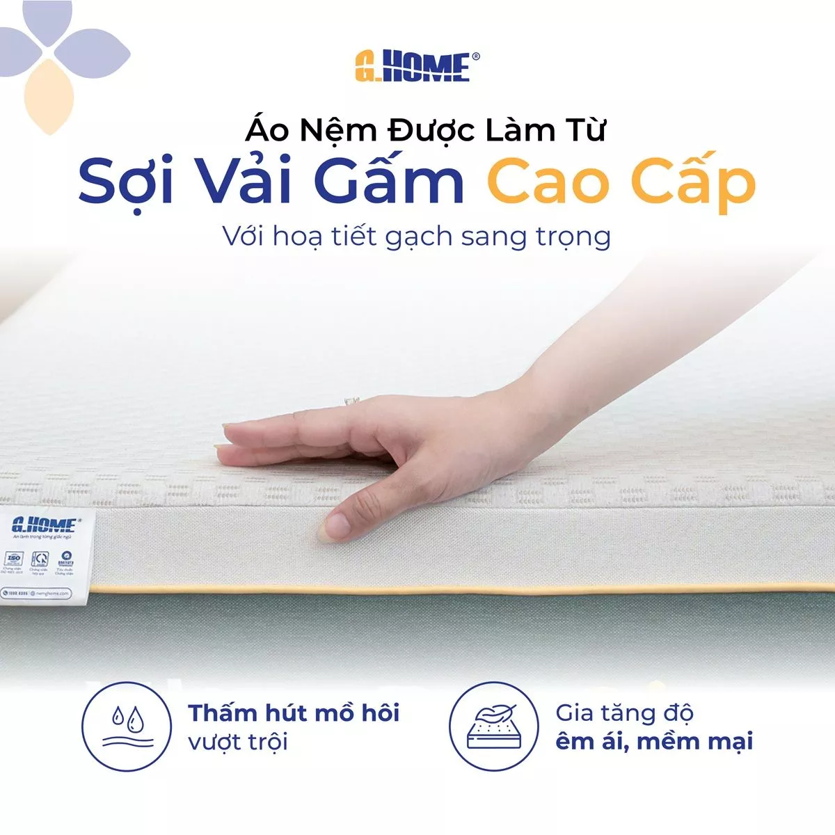 - Màu sắc trang nhã: Mặt trên và dưới của nệm có màu xám nhẹ nhàng kết hợp với họa tiết trắng tinh tế, mang đến không gian thư giãn mát mẻ, trang nhã.